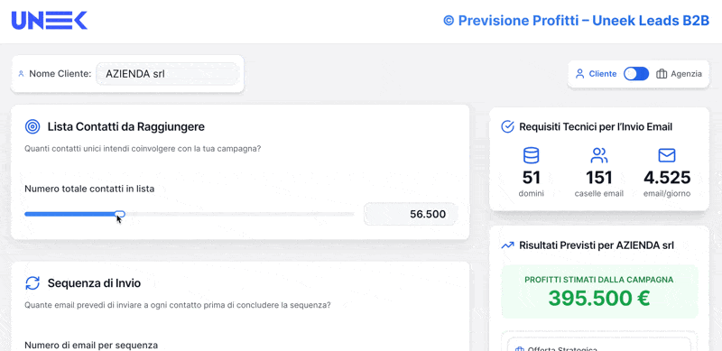 Uneek Leads lavora esclusivamente con imprese B2B già operative. Offriamo consulenza, infrastruttura e—se previsto dal contratto—gestione dell’outreach con fissaggio di appuntamenti qualificati con i decision-maker. Non vendiamo “lead a pacchetto” e non garantiamo risultati specifici: le performance dipendono da mercato, offerta e processo commerciale del cliente. Non offriamo supporto all’avvio d’impresa. Trattiamo i dati nel rispetto del GDPR e gestiamo l’opt-out. I marchi citati appartengono ai rispettivi proprietari.